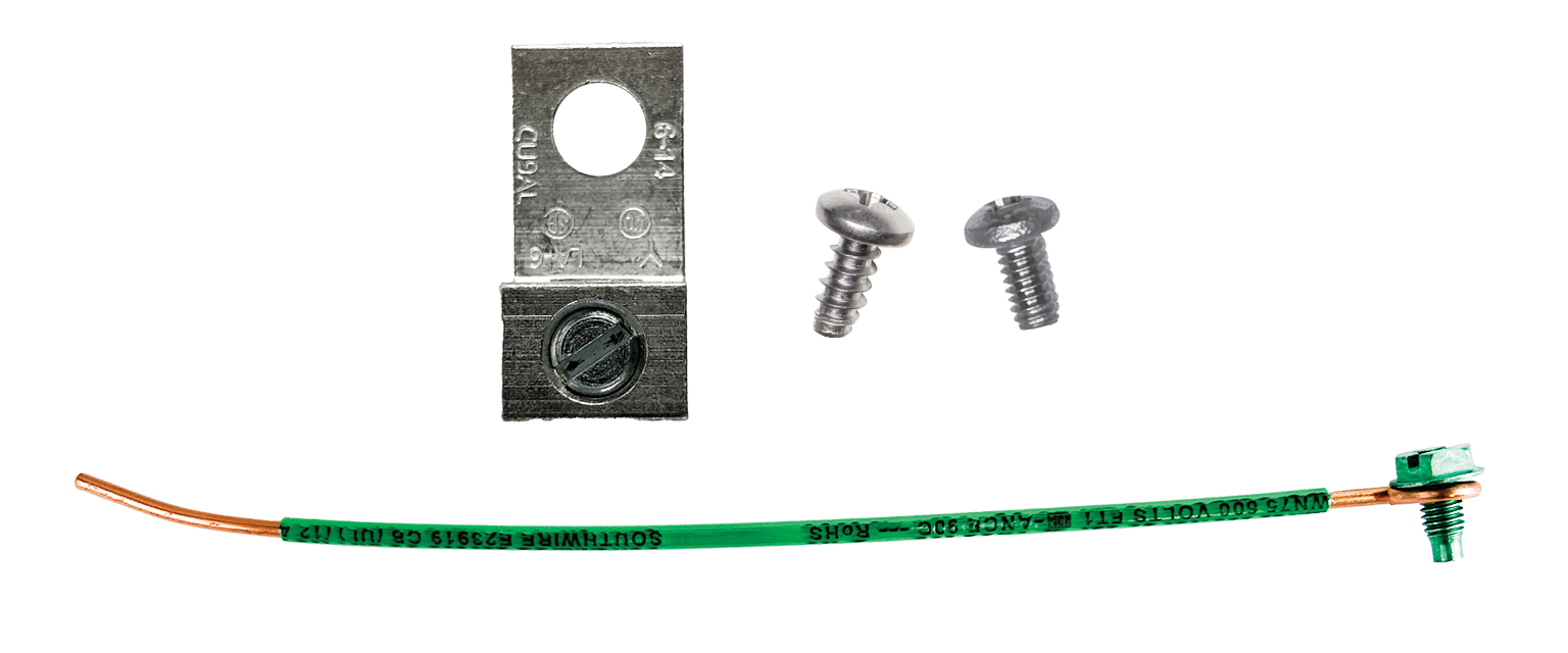 Copper Wire Grounding Kit includes Grounding Terminal and hardware to secure into enclosure mounting bosses.